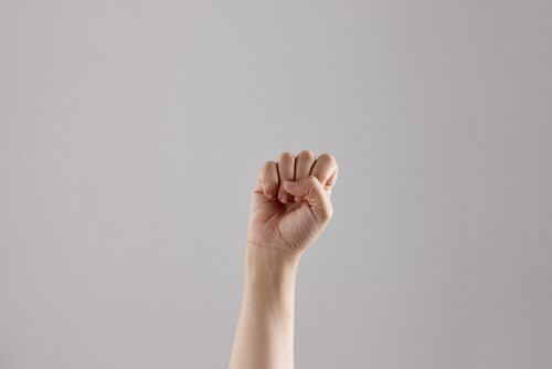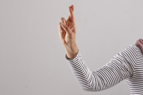 امرأة تشير بيديها بلغة الإشارات المختلفة