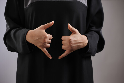 امرأة تشير بيديها بلغة الإشارات المختلفة