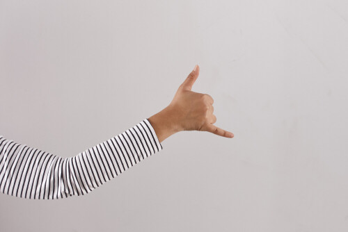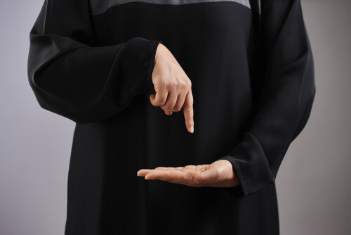 امرأة تشير بيديها بلغة الإشارات المختلفة