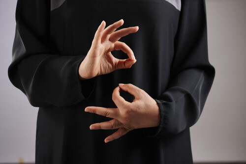 امرأة تشير بيديها بلغة الإشارات المختلفة