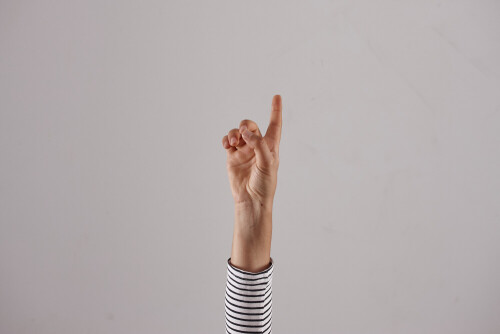 امرأة تشير بيديها بلغة الإشارات المختلفة