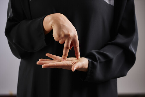 امرأة تشير بيديها بلغة الإشارات المختلفة
