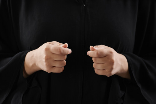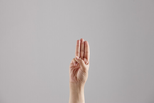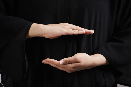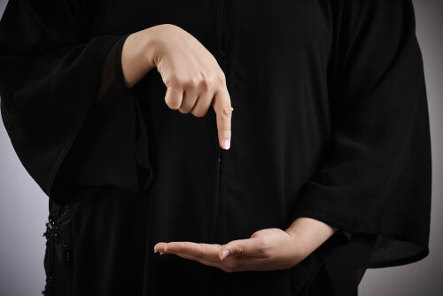 امرأة تشير بيديها بلغة الإشارات المختلفة