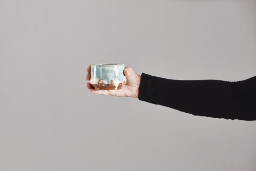 امرأة ترتدي عباءة سوداء تحمل أدوات فخارية مختلفة في أوضاع متعددة