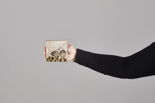 امرأة ترتدي عباءة سوداء تحمل أدوات فخارية مختلفة في أوضاع متعددة
