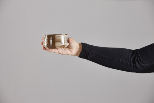 امرأة ترتدي عباءة سوداء تحمل أدوات فخارية مختلفة في أوضاع متعددة