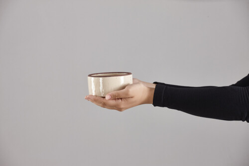 امرأة ترتدي عباءة سوداء تحمل أدوات فخارية مختلفة في أوضاع متعددة