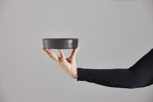 امرأة ترتدي عباءة سوداء تحمل أدوات فخارية مختلفة في أوضاع متعددة