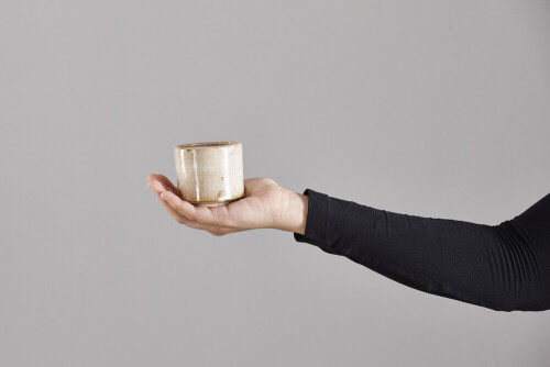 Multicolored Pottery Bowl with wooden honey handle in it