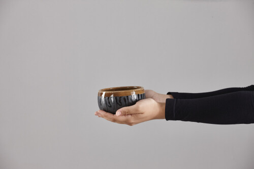 Male Hand Holding Wooden colander spoon