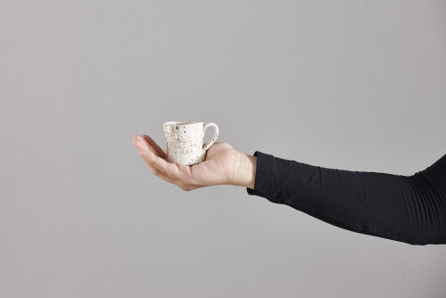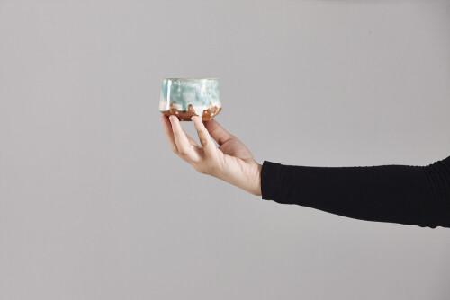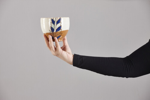 A woman in black abaya holding different pottery essentials in different positions