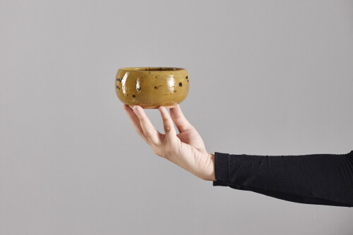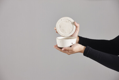 A woman in black abaya holding different pottery essentials in different positions
