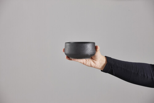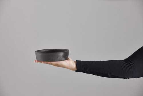 A woman in black abaya holding different pottery essentials in different positions