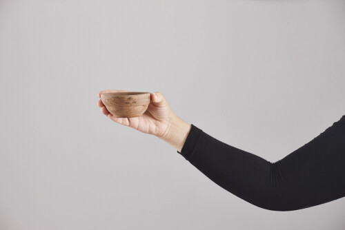 A woman in black abaya holding different wooden essentials in different positions