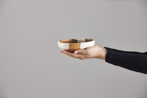 A woman in black abaya holding different pottery essentials in different positions