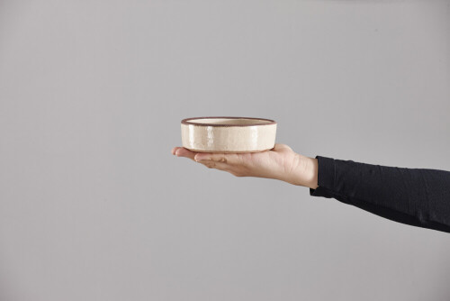 A woman in black abaya holding different pottery essentials in different positions