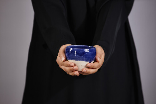 A woman in black abaya holding different pottery essentials in different positions