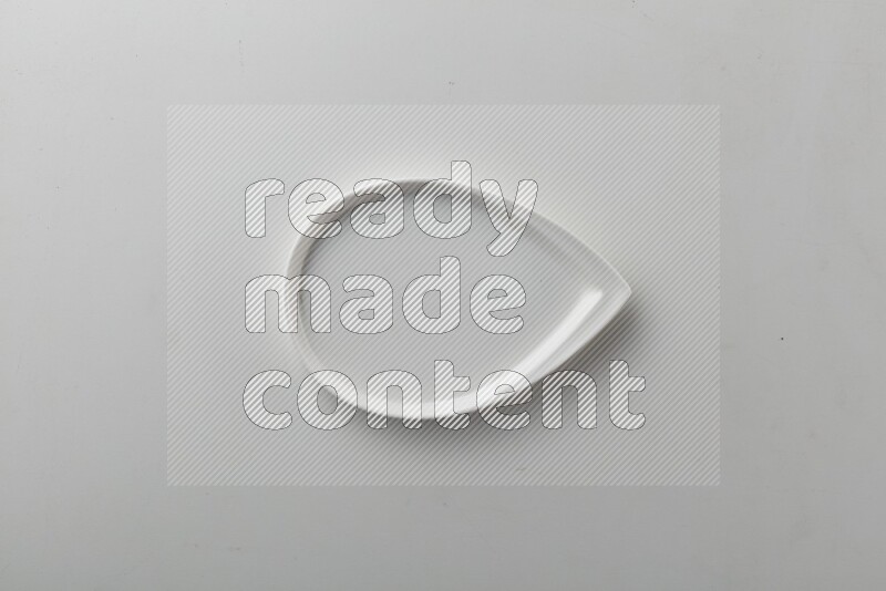Top-view shot of an irregular white plate on white background